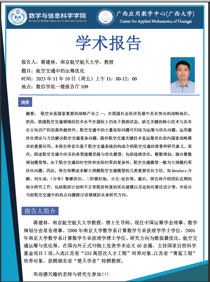 学术报告:航空交通中的运筹优化