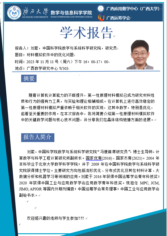 学术报告:材料模拟软件中的优化问题
