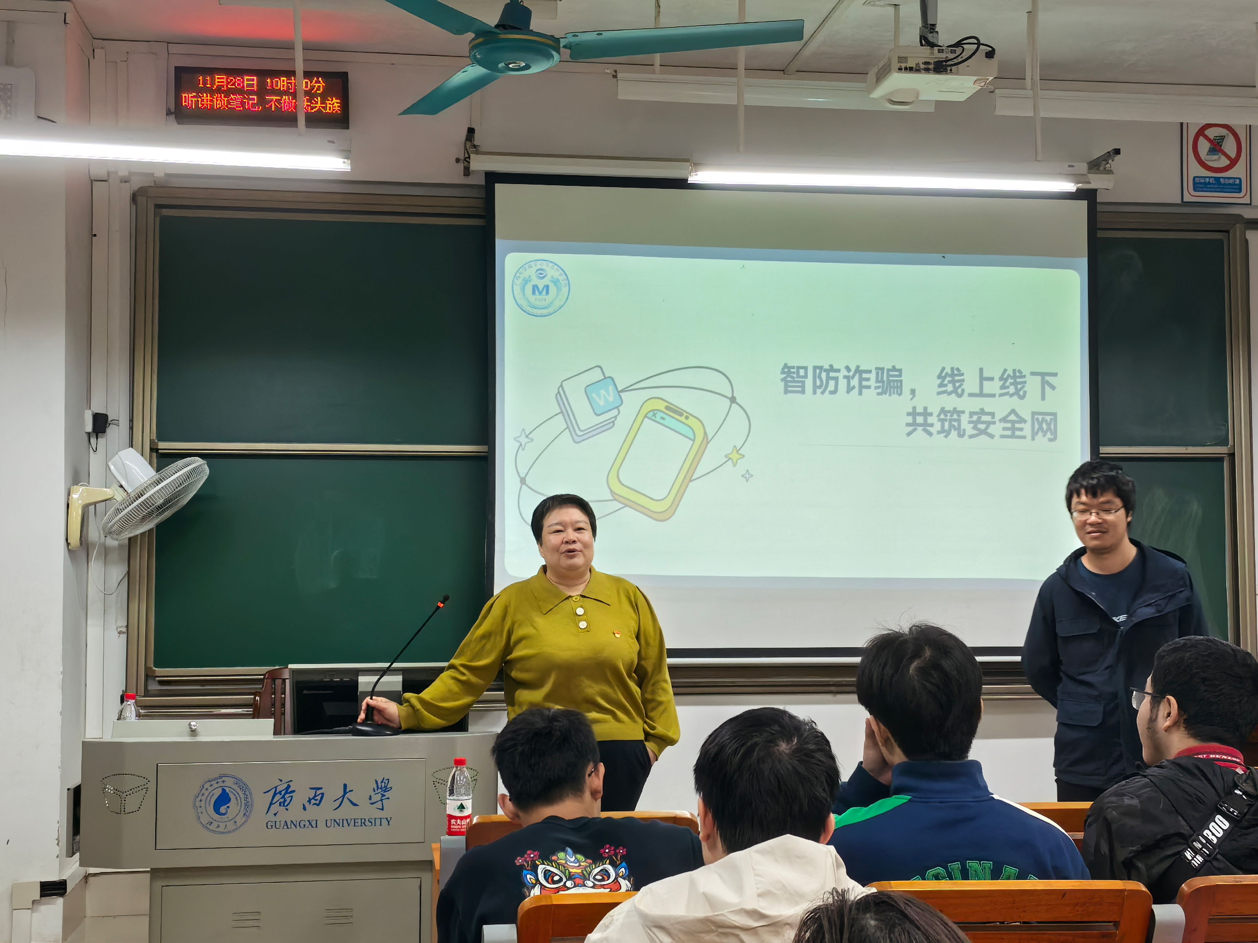 11月,我院开展了以“智防诈骗,线上线下共筑安全网”为主题的教育活动。活动就常见诈骗类型,诈骗识别技巧,防诈骗实用策略等几个方面从线上线下两方面均展开讲解。此次主题教育活动进一步扩大了反诈宣传覆盖面,提高了学生反诈意识。