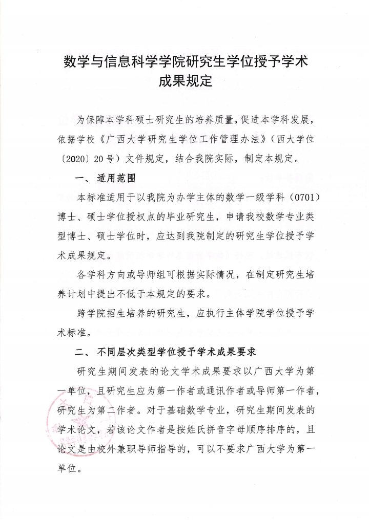 关于印发《数学与信息科学学院研究生学位 授予学术成果规定》的通知